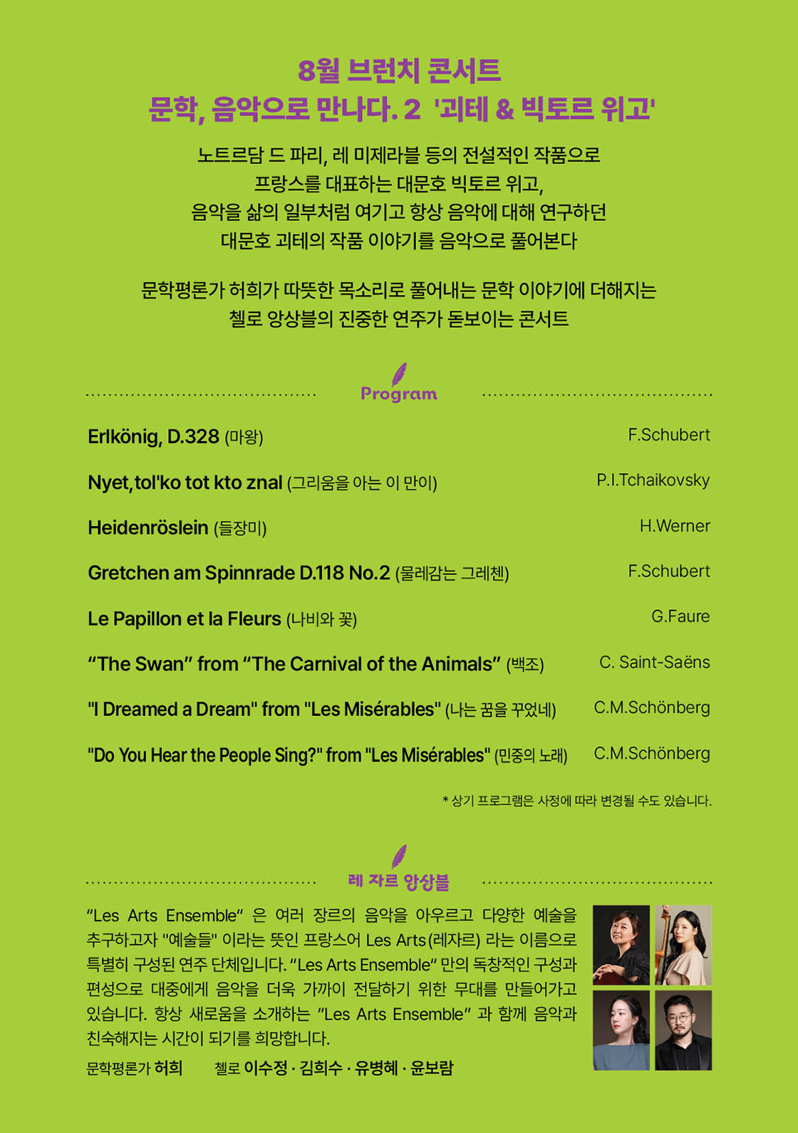 브런처 콘서트, 문학, 음악으로 만나다 Ⅱ: 괴테 & 빅토르 위고