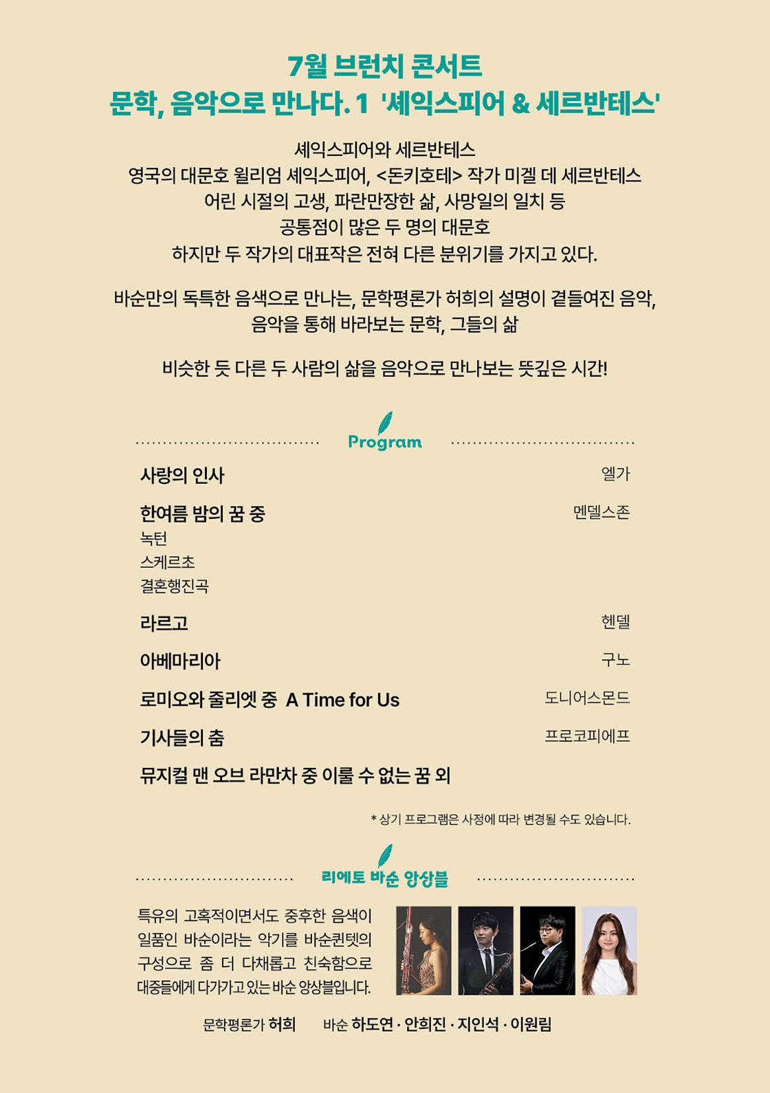 브런치 콘서트, 문학, 음악으로 만나다 Ⅰ: 셰익스피어 & 세르반테스