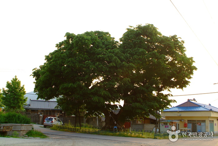 느티나무는 키가 26m, 가슴높이의 줄기둘레가 10m 이상까지 자라는 낙엽성 큰키나무로서 나무의 모양이 아름답고 병충해가 적어 정자목이나 풍치목으로 흔히 활용되는 나무이다. 이 나무의 나이는 확실하지 않으나 약 380년 정도로 보이며 인동장씨의 시조가 심었다고 전해지고 있다. 키는 10m, 가슴높이의 줄기둘레는 8.4m이다. 큰 가지가 일부 죽었고 수세도 약해져 있으나 옛날부터 동제를 지내오는 당산목이다.